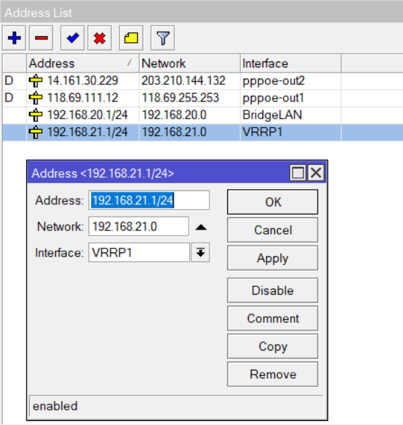 → Sau đó, bạn vào Menu IP –> Address và gán địa chỉ IP theo thông số: