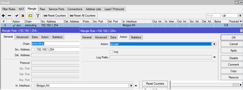 addaction=acceptchain=preroutingsrc-address=192.168.1.254in- interface=BridgeLAN