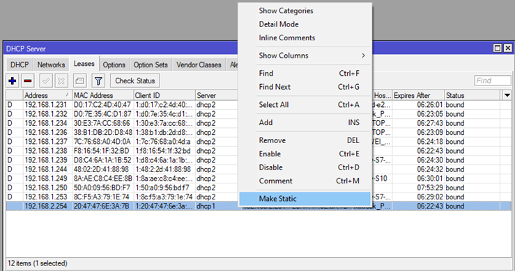 - Trước tiên, bạn cần phải gán cố định IP của thiết bị trong thẻ Lease (DHCP Server).