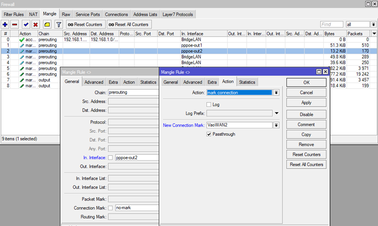addaction=mark-routingchain=outputconnection-mark=VaoWAN2new- routing-mark=DiraWAN2passthrough=yes