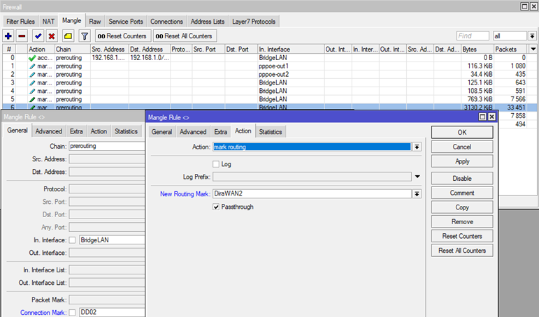 addaction=mark-routingchain=preroutingconnection-mark=DD02in-interface=BridgeLAN new-routing-mark=DiraWAN2passthrough=yes