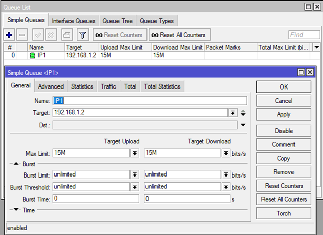 Chẳng hạn, bạn mong muốn gán băng thông cho mỗi khách hàng trong mạng với băng thông tải xuống và tải lên là 15M/15M trong dải mạng LAN 192.168.1.1/24