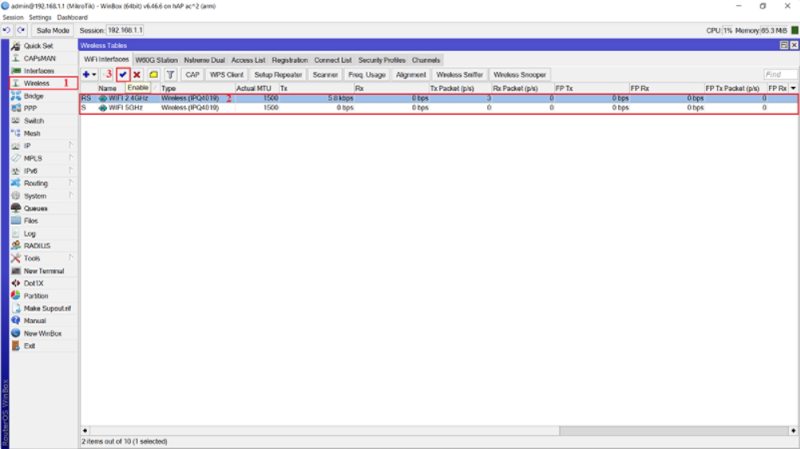- Trong Interfaces hoặc Wireless bạn sẽ thấy chúng bị disable, giờ thì chọn vào chúng và enable nó lên