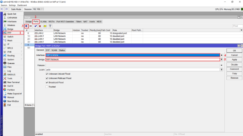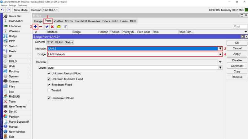 - Tạo xong nhóm LAN Network rồi bạn cần đưa cổng 2,3,4 và 5 vào nhóm này. Thao tác thêm cổng 2 vào nhóm Lan Network như hình dưới. Thêm các cổng 3,4 và 5 làm tương tự như với cổng số 2