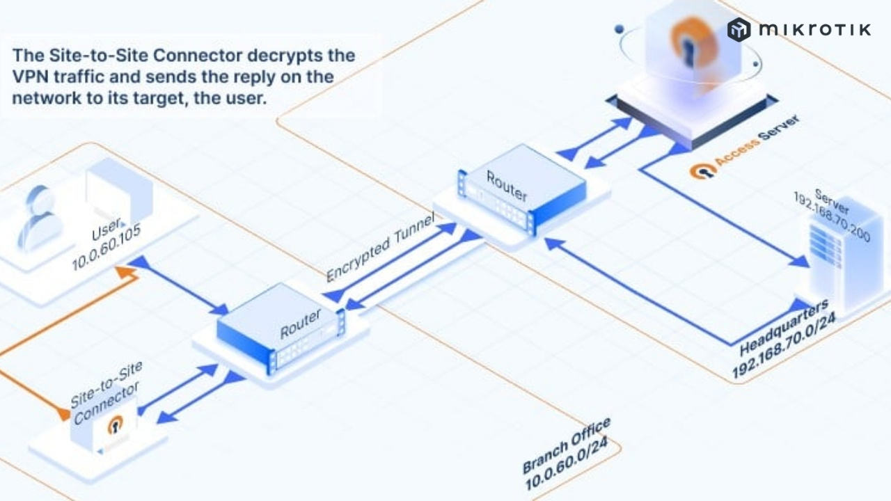 Site to site VPN là một loại kết nối VPN được sử dụng phổ biến trong các doanh nghiệp có nhiều văn phòng hoặc chi nhánh. Khi sử dụng site to site VPN, các văn phòng hoặc chi nhánh của doanh nghiệp sẽ được kết nối với nhau thông qua một mạng riêng ảo, tạo ra sự liên kết an toàn và bảo mật giữa các địa điểm khác nhau giúp cho việc chia sẻ tài nguyên mạng, dữ liệu và ứng dụng trở nên dễ dàng hơn, đồng thời đảm bảo tính bảo mật và ổn định cho toàn bộ hệ thống mạng của doanh nghiệp.